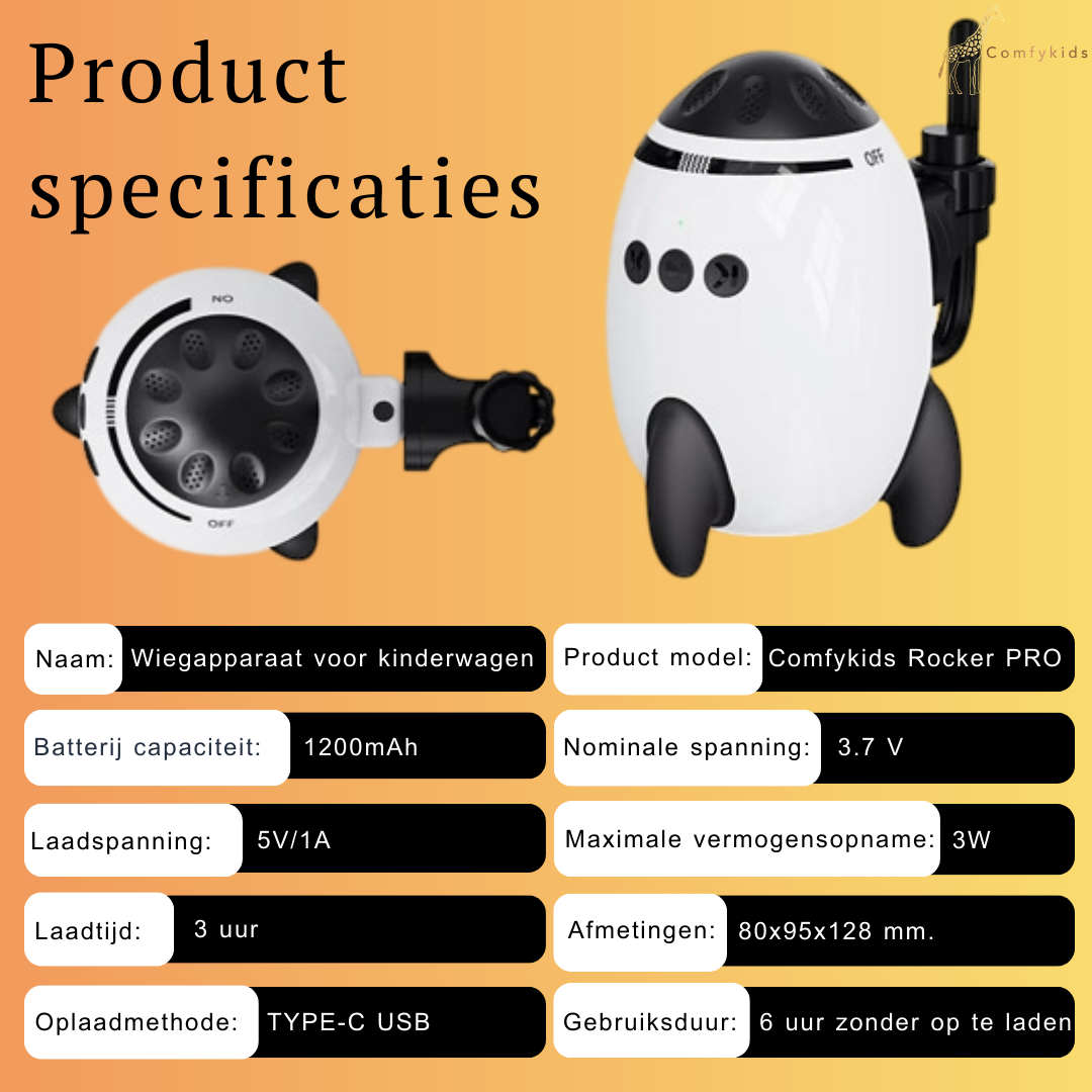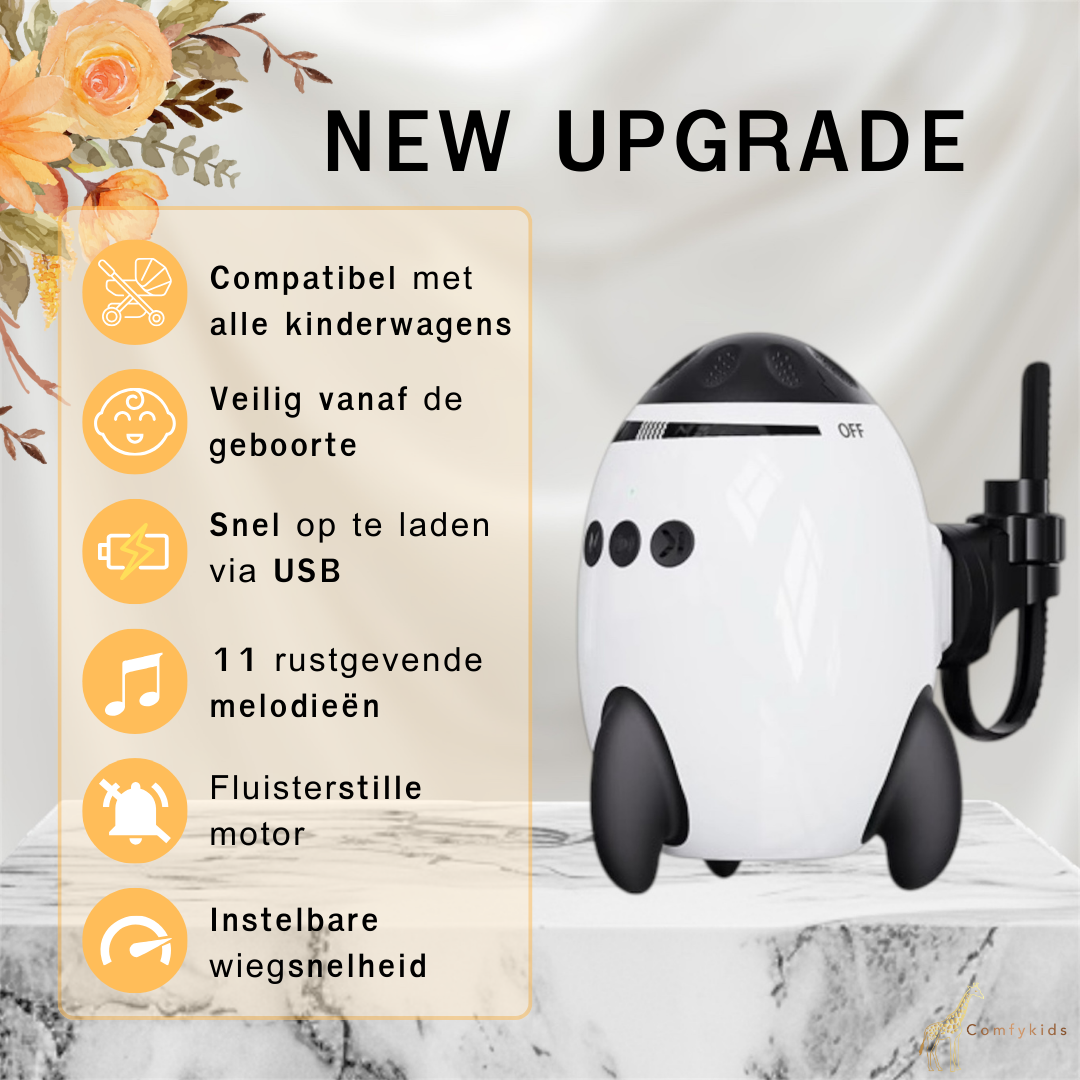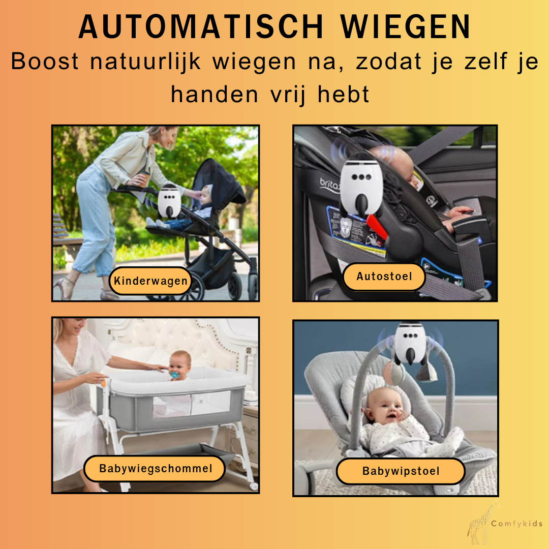 Ontdek de ultieme automatische baby wiegmotor voor kinderwagens met Bluetooth muziekfunctie en ingebouwde kalmerende slaapgeluiden. Dé oplossing voor ouders die hun baby rust en ontspanning willen bieden, zonder continu zelf te hoeven wiegen. Met een fluisterstille verstelbare motor en universele kinderwagenbevestiging zorgt deze slimme rocker ervoor dat je kindje heerlijk in slaap gewiegd wordt waar je ook bent. Dankzij het lichte, draagbare en USB-C oplaadbare ontwerp neem je de Baby Rocker PRO moeiteloos overal mee naartoe.