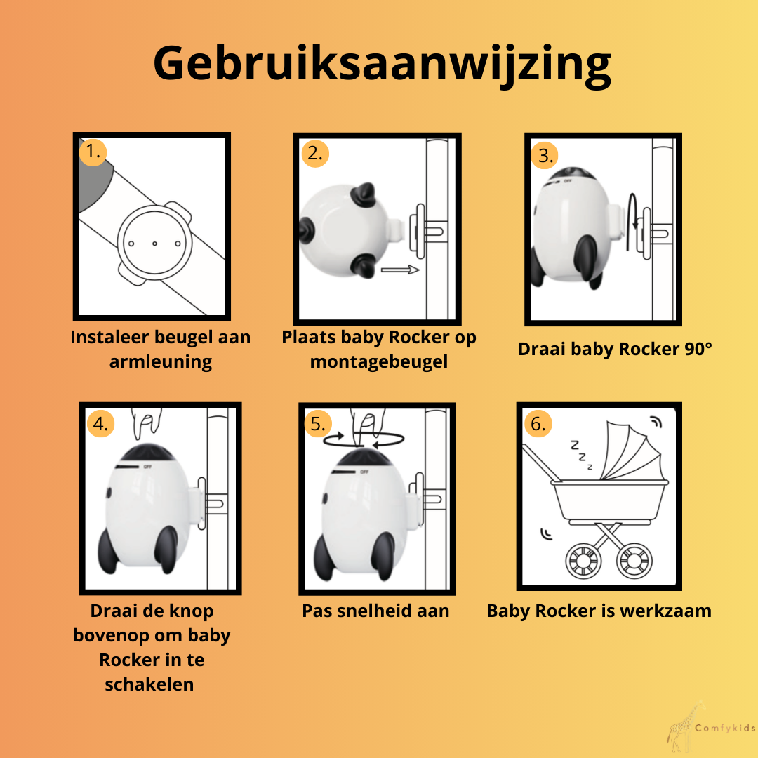 Geef jouw baby het ultieme comfort met deze innovatieve kinderwagen-rocker ontworpen om ritmisch te wiegen en je kindje heerlijk rustig te houden, waar je ook bent. Met een stille verstelbare motor, slimme muziekmogelijkheden en universele compatibiliteit is dit de ideale hulp voor ouders die gemak en gemoedsrust zoeken.