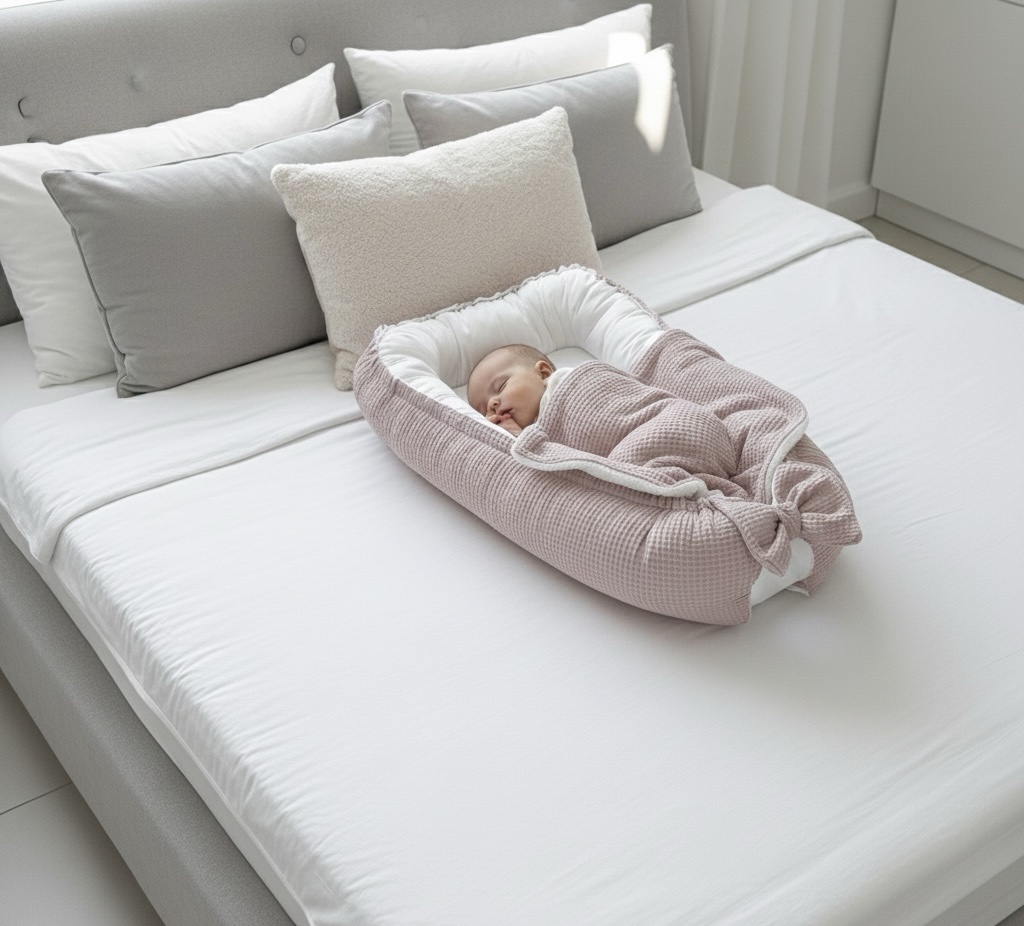 Het babynestje biedt je baby een geborgen en veilig plekje om te slapen, rusten of spelen. Door de verstelbare koordjes pas je het nestje eenvoudig aan de lengte van je baby aan. De zachte, verhoogde randen zorgen voor extra veiligheid. Het babynest is lichtgewicht en makkelijk verplaatsbaar, ideaal voor gebruik in: